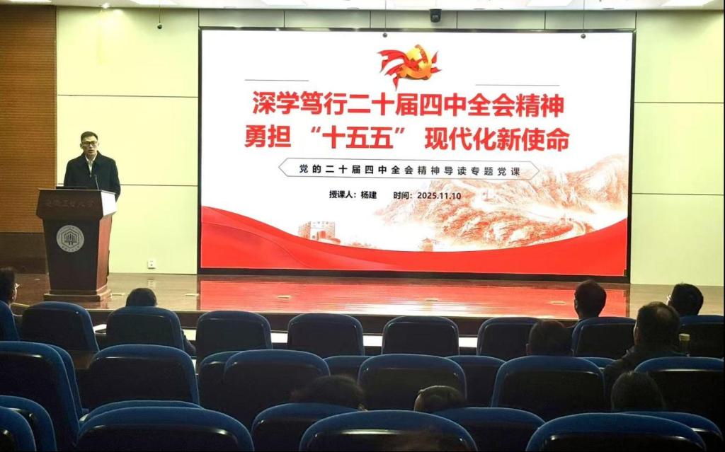 会上,杨建以深学笃行党的二十届四中全会精神 勇担“十五五”现代化新使命为题,传达学习了党的二十届四中全会精神,重点解读了“十五五”时期经济社会发展的指导思想、主要目标和重要部署。他指出,“构建以先进制造业为骨干的现代化产业体系”“要加强原始创新和关键核心技术攻关,推动科技创新和产业创新深度融合,一体推进教育科技人才发展,深入推进数字中国建设”等国家规划为学院发展带来了新的机遇和挑战,学院要主动对接国家战略需求,持续深化改革创新,推动学科建设水平再上新台阶,为加快建设制造强国贡献力量。