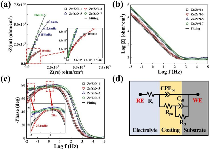 (Zr/ZrN多层涂层在SBF溶液中的EIS图谱)