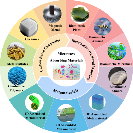 在当代民用和军事防御领域,微波吸收材料作为应对电磁污染的关键利器,发挥着无可替代的重要作用。碳系材料基于出色的兼容性和优异的可塑性,为多样化的结构设计工程奠定坚实基础,成为最具应用潜力的材料之一。然而,高度共轭的电子体系、固定的电子跃迁能级导致其存在阻抗匹配差、吸收频段窄等问题,给电磁波吸收领域的应用带来了重大挑战。本综述从简单的复合结构设计调控着手,深入探讨了电磁波的产生和损耗机制。随后,系统讨论了受自然启发的仿生结构设计优化策略,重点强调了结构选择和工艺设计。更重要的是,报告了基于超脱自然限制的超结构设计方案,并融入了前沿智能理念。最后,本文针对当前研究提出改进建议,并对未来发展趋势作出展望。