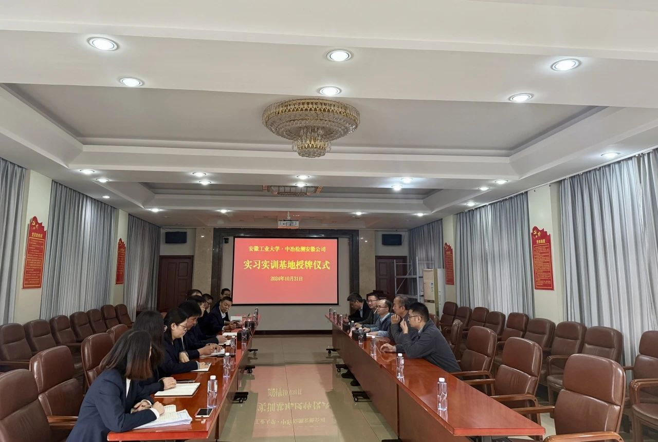 夏爱林副院长一行,前往中冶检测安徽公司开展实习实训基地签约暨揭牌仪式。中冶检测安徽公司总经理张长安、副总经理雷团结以及相关部门负责人参加活动。