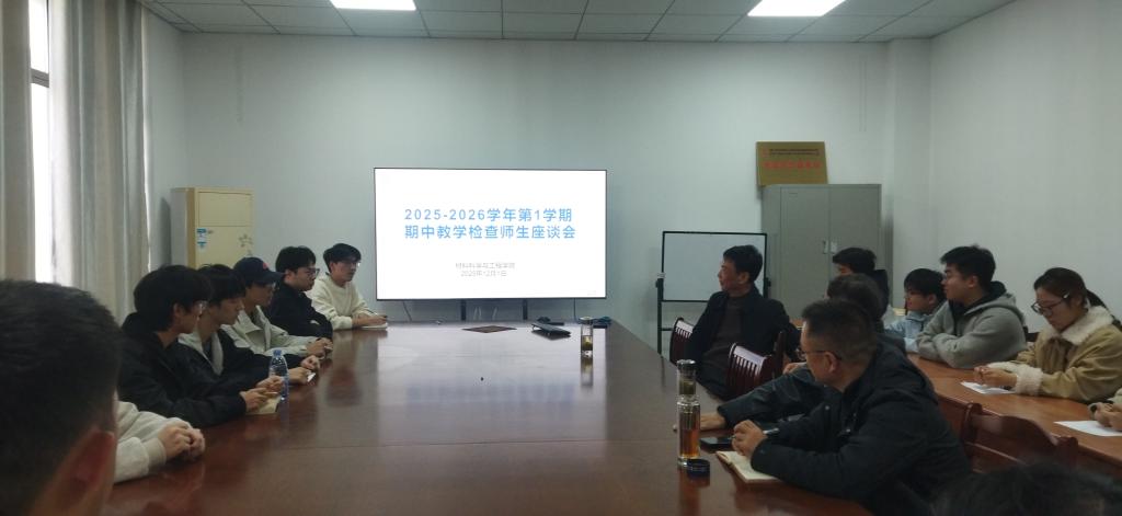 2025年12月1日下午,学院在材料楼南407会议室召开期中教学检查师生座谈会,座谈会由学院教学督导组组长晋传贵教授主持,学院教学督导组全体成员及各年级学生代表参加了会议。座谈会上,学生代表们就课程设置优化、实践教学安排、教学互动效果等方面积极建言献策。督导组专家认真听取了学生代表发言,对现场问题进行了细致解答与专业指导。晋传贵教授在总结讲话中强调,学院高度重视学生们提出的宝贵意见,对于涉及学院教学管理的合理化建议,将汇报学院领导商定解决,对于需要跨学院协调或学校层面解决的问题,将汇总梳理后提交教务处统筹解决。