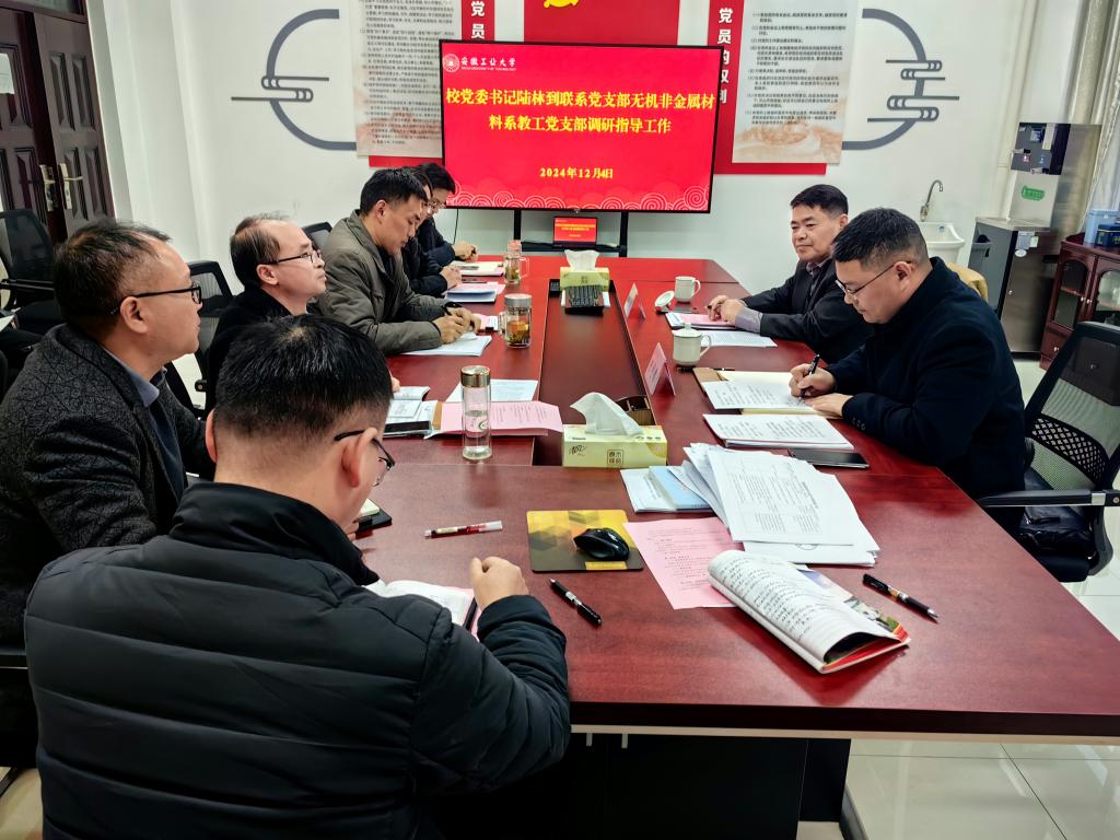 12月4日下午,校党委书记陆林深入A片网 无机非金属材料系教工党支部指导工作。A片网 领导班子,无机非金属材料系教工党支部支委、系主任参加了座谈会。会议由学院党委书记杨建主持。