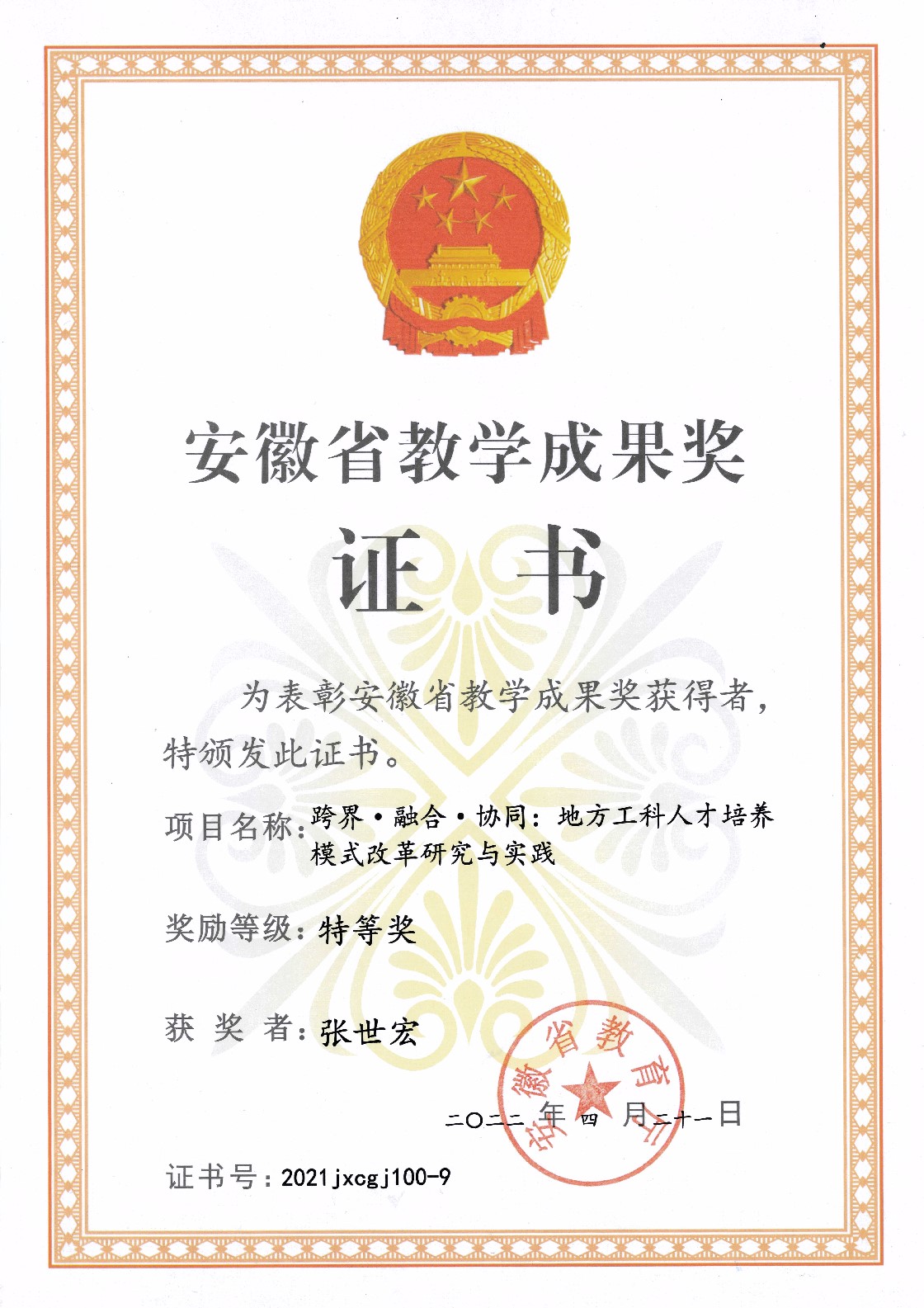 安徽省教学成果特等奖 2022