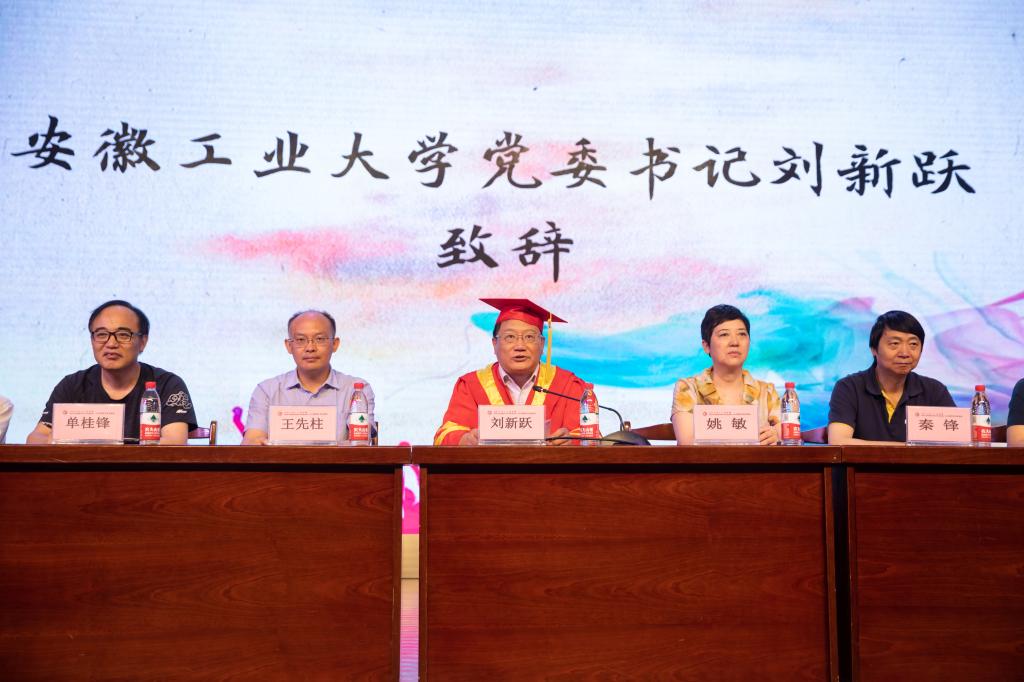 全体毕业生向领导、老师和家长行感恩礼,并献上鲜花。典礼以全场齐唱《安徽工业大学校歌》结束。