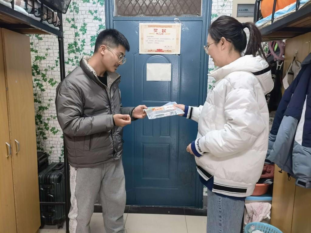 为2022届考研学子组织了“坚持到底 一‘研’为定”慰问活动。学院2022届本科生辅导员赵颖虹和李盼深入学生寝室,走访考研学子,发放“考研文具大礼包”,送上学院的关心和祝福。