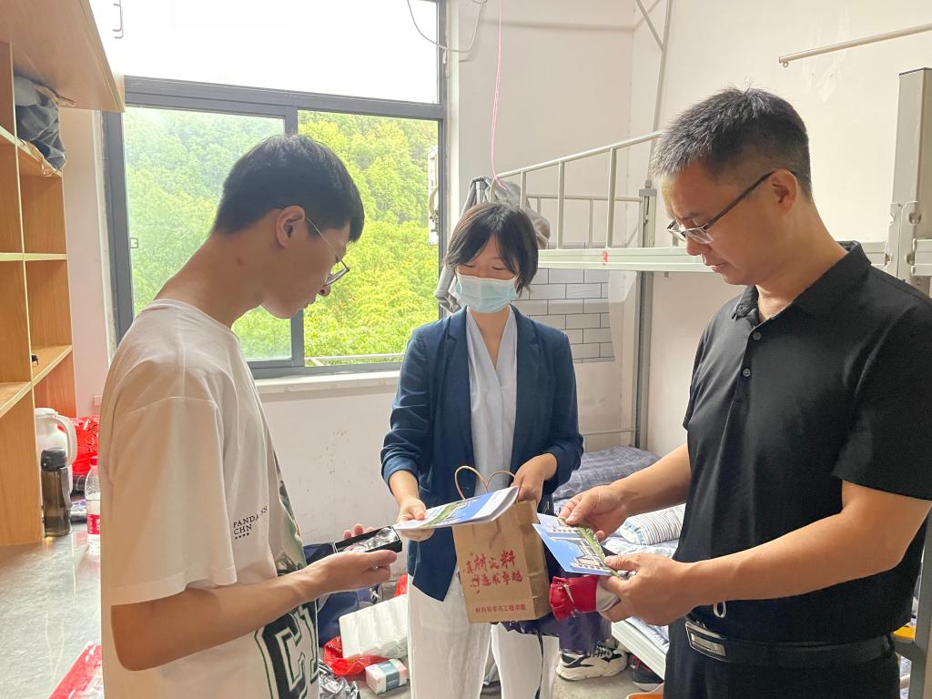 走访过程中,老师们悉心询问了新生的住宿、学习、饮食以及家庭等情况,与同学们进行亲切交谈。季爱华对新生的到来表示热烈欢迎,他叮嘱新生要尽快适应大学生活、融入新环境,建立良好的人际关系。老师们也向同学们传达了学校、学院疫情防控的有关精神及相关安排部署,叮嘱同学们要严格落实疫情防控工作相关要求。赵颖虹耐心和同学们介绍了校情院情和专业特色,展示了学院为新生们精心准备的明信片、学院专属口罩、定制钥匙扣等等,新生们均表示暖心又贴心。