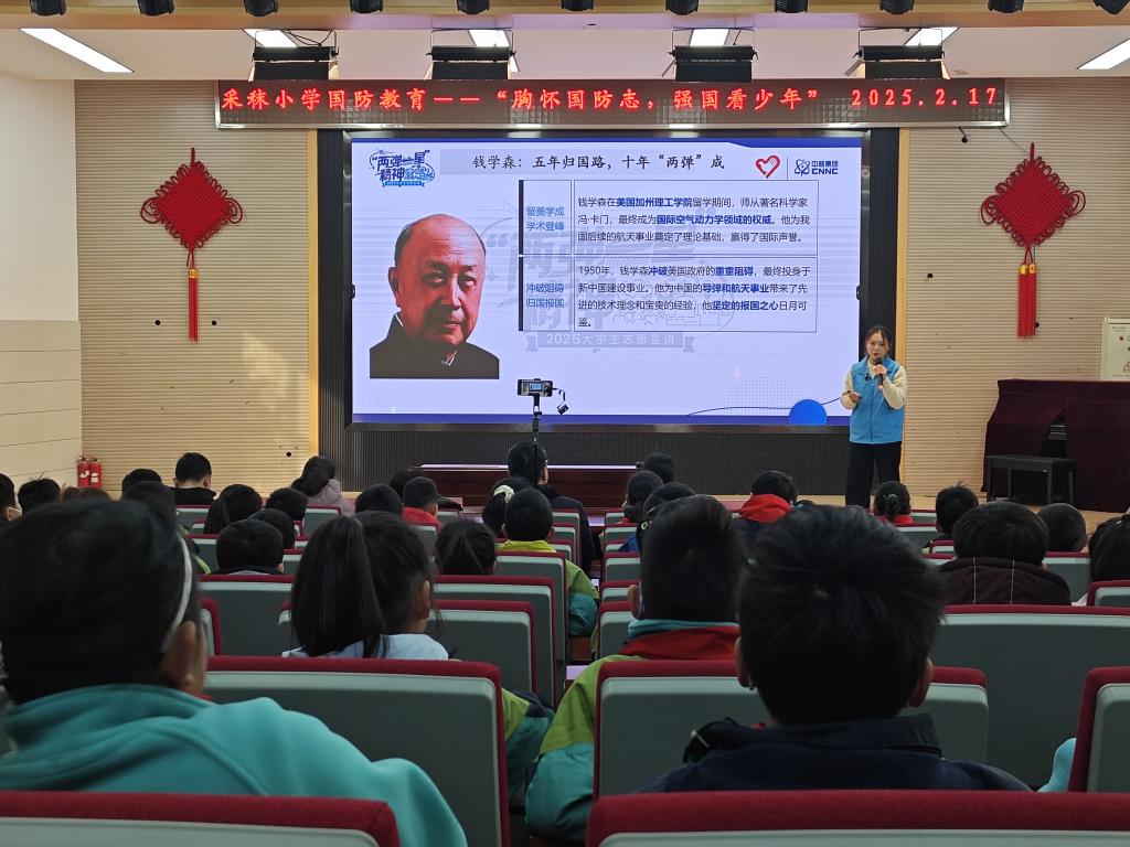 此次宣讲以“‘两弹一星’传星火,国防成就耀中华”为主题,宣讲团成员通过生动的讲述、丰富的图片和视频资料,展现了老一辈科学家在极其艰苦的条件下,克服重重困难,成功研制出中国第一颗原子弹、氢弹和第一颗人造卫星的辉煌历程,呈现了“两弹一星”精神背后的感人故事。宣讲团成员还向同学们展示了我国国防事业从无到有、从弱到强的发展历程,并结合当代国防科技发展的最新成就,鼓励同学们以“两弹一星”精神为指引,努力学习科学文化知识,积极参与国防教育活动,争做国防小卫士,为祖国的科技发展贡献力量。小朋友们被先辈们无私奉献的精神所打动,为最新的国防成果感到自豪,现场不时响起热烈的掌声。