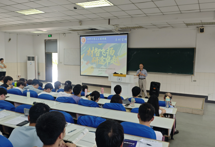 会上,汪盛颜指出,考研是专业深造的重要途径,也是践行"材料报国"使命的关键一步。他以“信心”“决心”“爱心”为题勉励同学们端正学习态度,科学规划备考,提升专业素养,以顽强拼搏的精神实现人生理想。夏爱林通过详实数据,分析了材料专业特点和考研形势,并介绍了"一志愿精准定位+调剂预案"的备考策略。