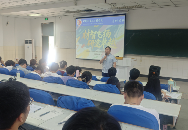 于5月19日下午在东教一阶102教室召开“材智飞扬,研途卓越”2022级考研动员大会。学院党委副书记、副院长汪盛颜,副院长夏爱林、班主任代表、辅导员及400余名师生参加。