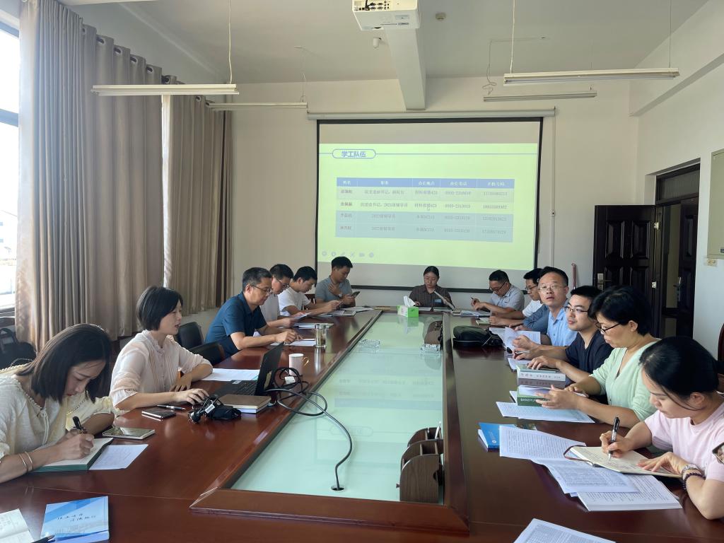 会上,赵颖虹详细介绍了2022级新生基本情况,带领大家学习了《安徽工业大学班主任管理条例》等文件制度,重点强调了班主任工作职责和要求,并对迎新工作进行了部署安排。接下来,两位辅导员做了简单的自我介绍,表示希望与各位新生班主任共同将2022级新生培养成“材”。院团委书记张佩佩就团学工作做了介绍,鼓励班主任引导学生积极参加团学活动,实现学生德智体美劳全面发展。