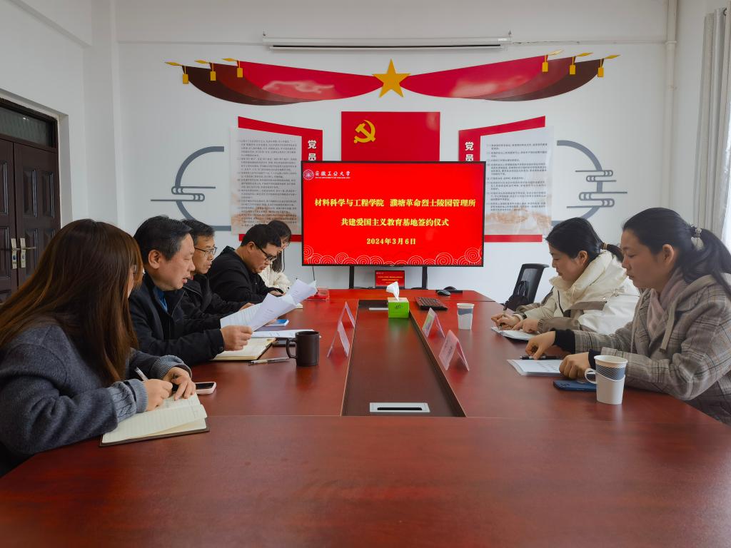 柳东明、汪盛颜分别介绍了学院学科建设以及人才培养等方面情况。刘滢介绍了濮塘烈士陵园建设和开展爱国主义教育情况。双方签订爱国主义教育基地共建协议,并就相关工作进行了座谈交流。今年正值材料学院“濮塘行”模拟长征活动二十周年,双方将利用优势资源,通过宣传教育,志愿服务,社会实践,“大思政课”实践教学等内容,不断创新合作形式、拓宽合作领域、丰富研究成果,力争爱国主义教育和思想政治教育取得更多更深的实效。